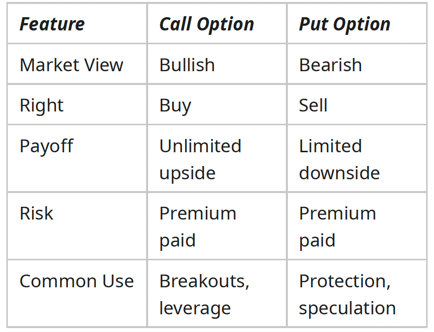- Think of it as “buying insurance” for your trades — calls for upside, puts for downside.